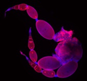 6-day-old last instar nymph. Actins (red) were stained with Phalloidin-TRITC, and the nuclei were stained with DAPI (blue)